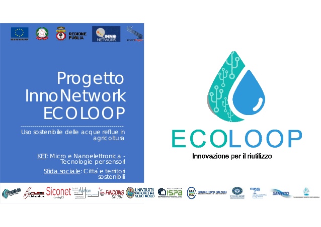 Il progetto Ecoloop nasce con l’intento di rendere possibile il pieno riutilizzo delle acque reflue per l’irrigazione, vincendo le attuali barriere del riuso. Come? Coinvolgendo tutti gli attori del riuso, dall’ente gestore del servizio idrico alla cooperativa di distribuzione, a finire alle aziende agricole e fornendo a tutti loro gli strumenti tecnologici necessari a realizzare un’irrigazione in piena sicurezza, rispettando ed incrementando gli obiettivi produttivi.In particolare, saranno realizzati due sistemi di supporto alle decisioni: uno dedicato ai gestori degli impianti di depurazione e distribuzione ed uno dedicato agli agricoltori, dove sarà possibile gestire l’irrigazione, essere costantemente informati sulle analisi di qualità dell’acqua in arrivo, gestire la fertirrigazione e molto altro.